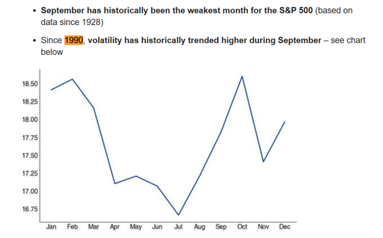 除了资金流的变化,历史季节性规律也为9月的市场前景蒙上阴影。回顾自1928年以来的数据,9月通常是标普500指数表现最差的月份。与此同时,自1990年以来的数据显示,市场波动性也往往在9月呈现上升趋势。9月也是全年散户投资者最不活跃的月份。
